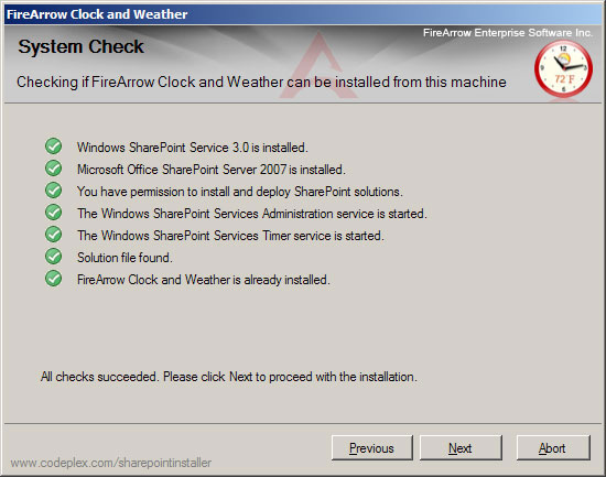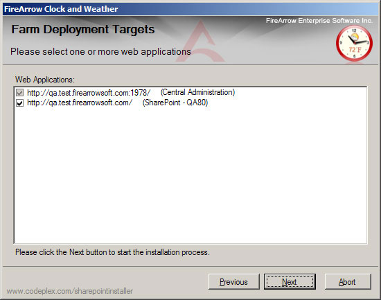 The software package contains the installer file, solution package file and other resource files needed for installation. You can use either the installer (Setup.exe) to install the software automatically or use the STSADM tool to install it manually. You must be the SharePoint Farm Administrator to perform the installation.