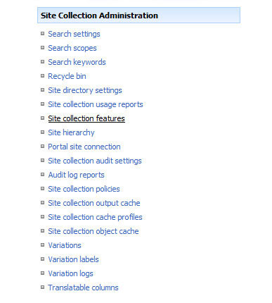 Select “Site collection features”.