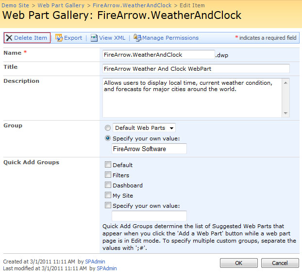 If you see errors when adding a FireArrow web part (e.g. Weather and Clock web part), please follow below steps.