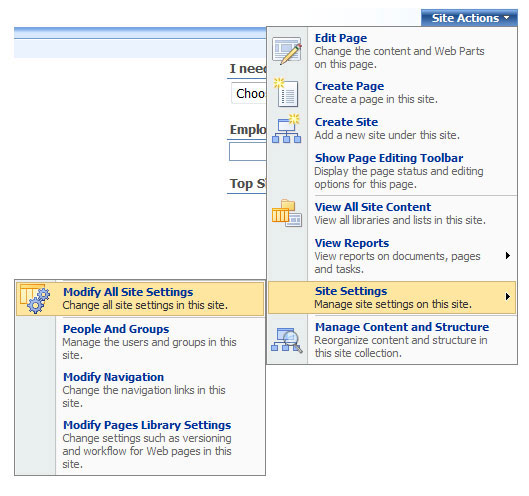 Go to "Modify All Site Settings".