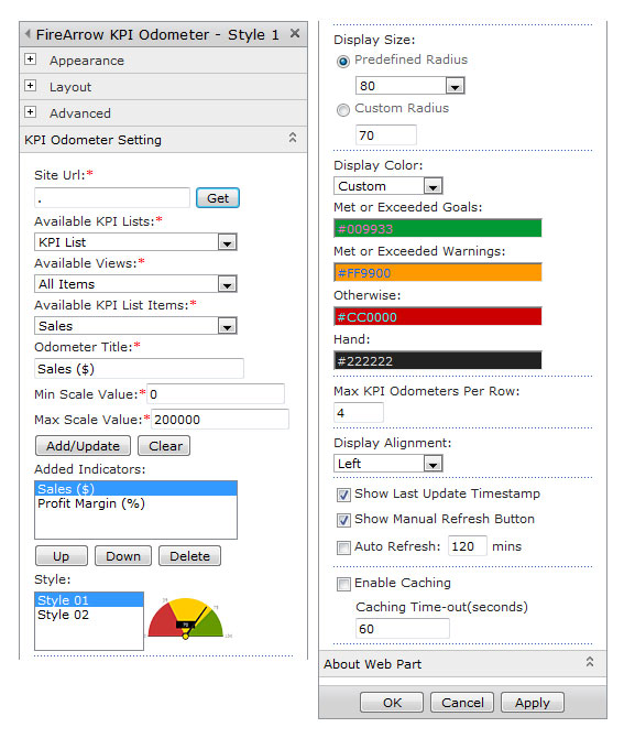 The FireArrow KPI Odometer Web Part enables you to display KPI data in a graphical way in SharePoint. It visualizes KPI data through odometer styles with customizable display colors and flexible configurations.
